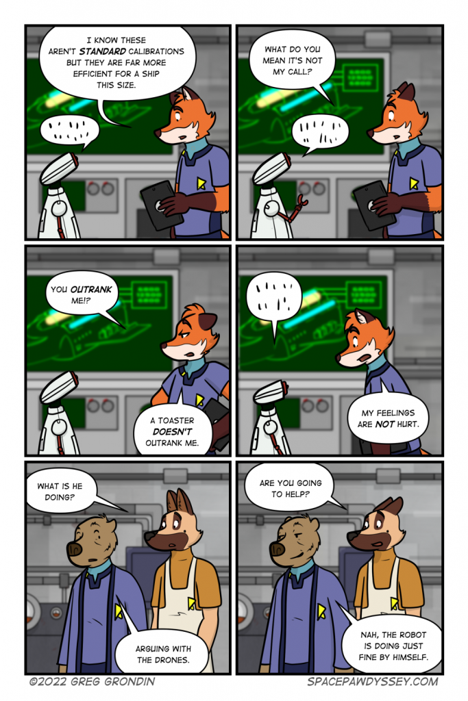 Space Pawdyssey #579 by frostclaw on October 7, 2022 at 11:55 am Chapter: MultiplesCharacters: Lex, Rowan, Toby