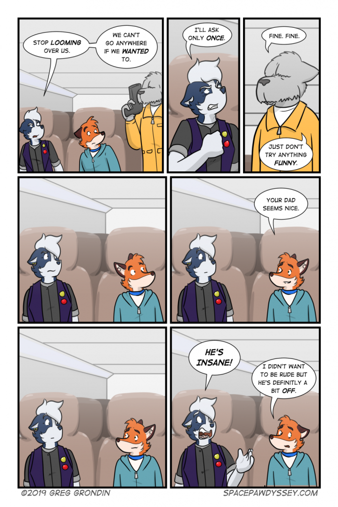 Space Pawdyssey #311 by frostclaw on November 5, 2019 at 12:20 pm Chapter: VisitationCharacters: Felix, Grant, Murphy, Rowan Somehow this didn’t get uploaded. Sorry. Comment